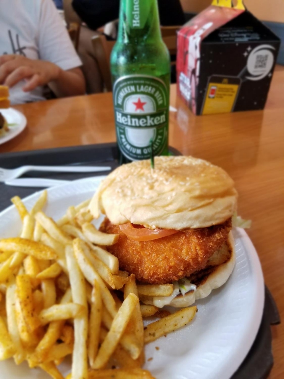 海老バーガーを食べましたがちょっぴりスパイシーで