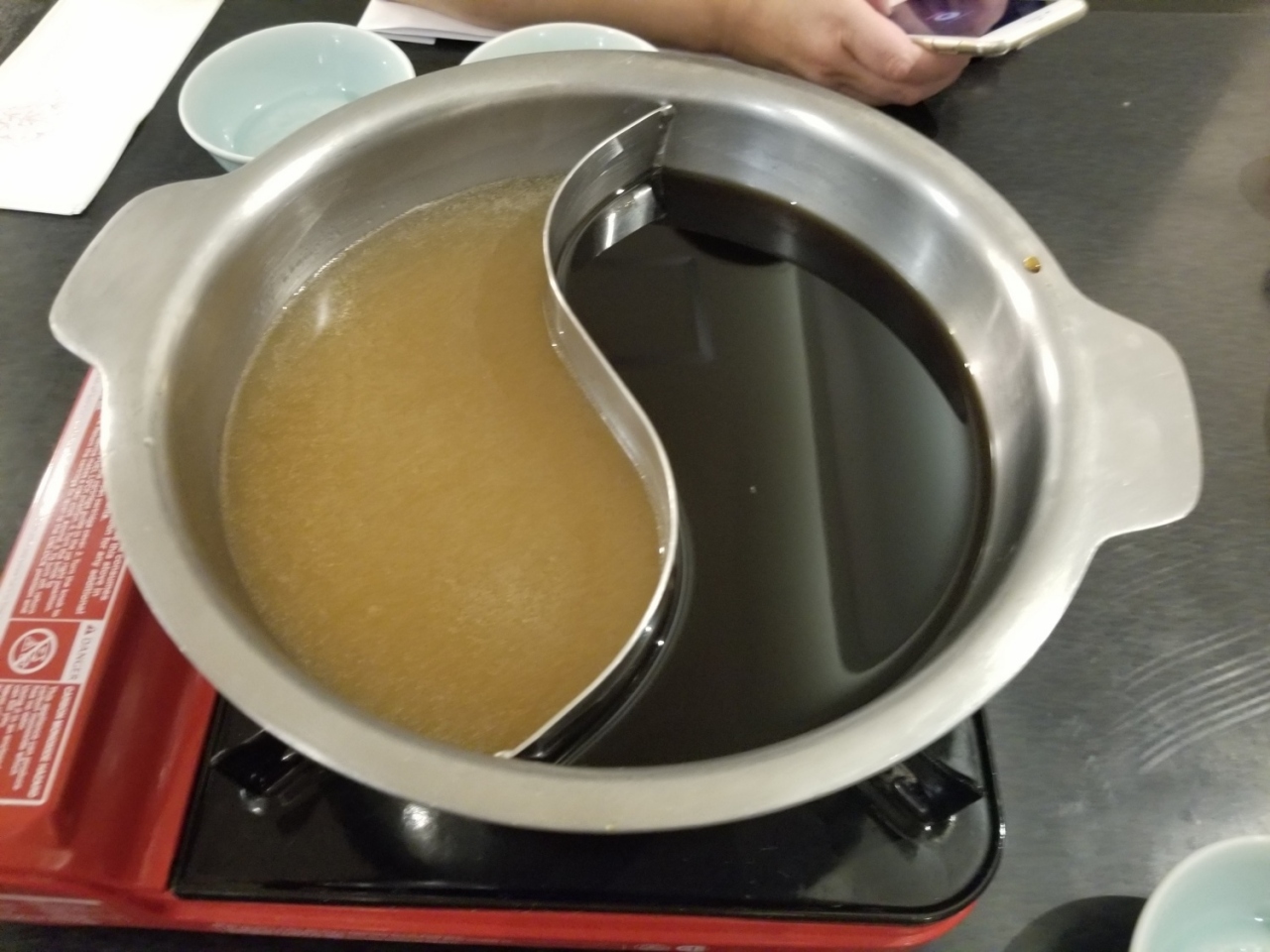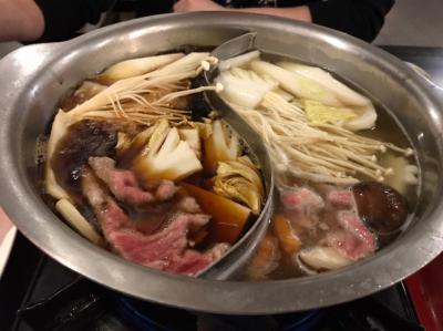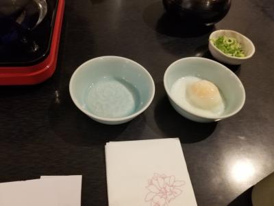 お出汁は2種類を選べたので、ゆず塩とすき焼き風にしました。