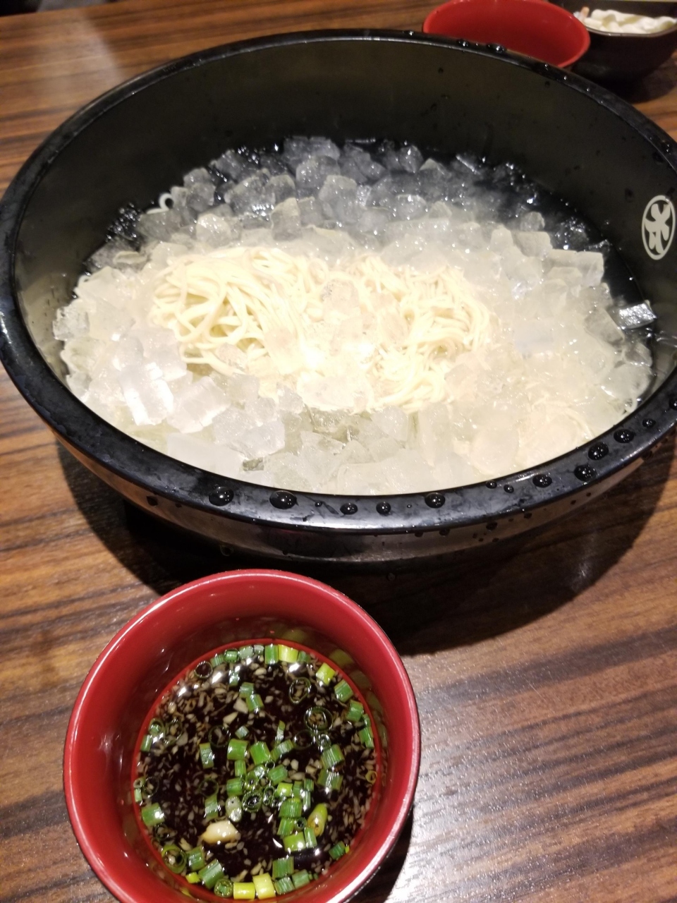 氷水の中に入っているのは素麺ではなくラーメン(細麺)