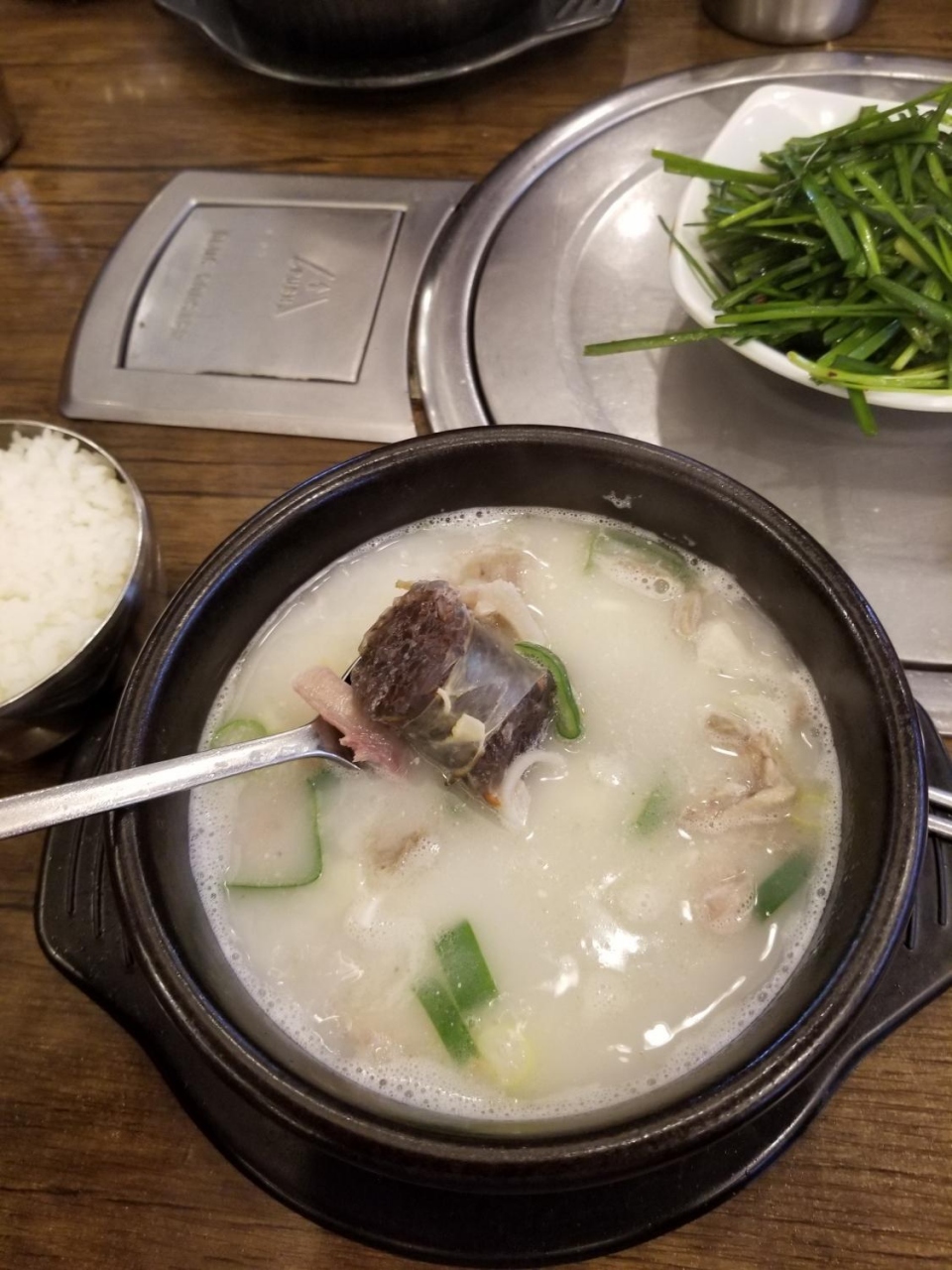 2種類のスンデが入った白濁スープに自分好みの味付けをしておいしくいただきました。- 旅行時期