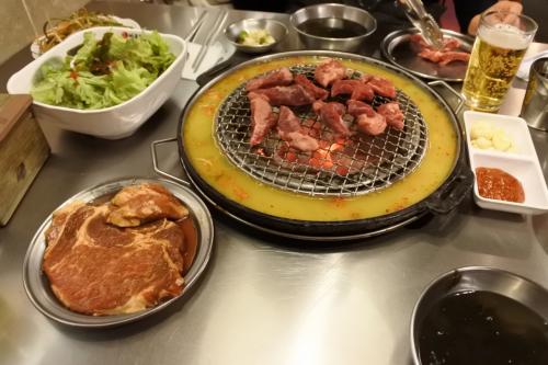 新堂駅近くの新麻浦カルメギは遅くまでやっているので観劇後にも便利