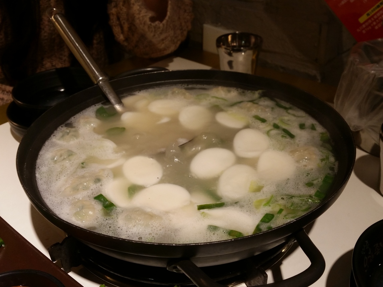 ぷるぷるのチョッパルとサービスのお餅と餃子入りスープは