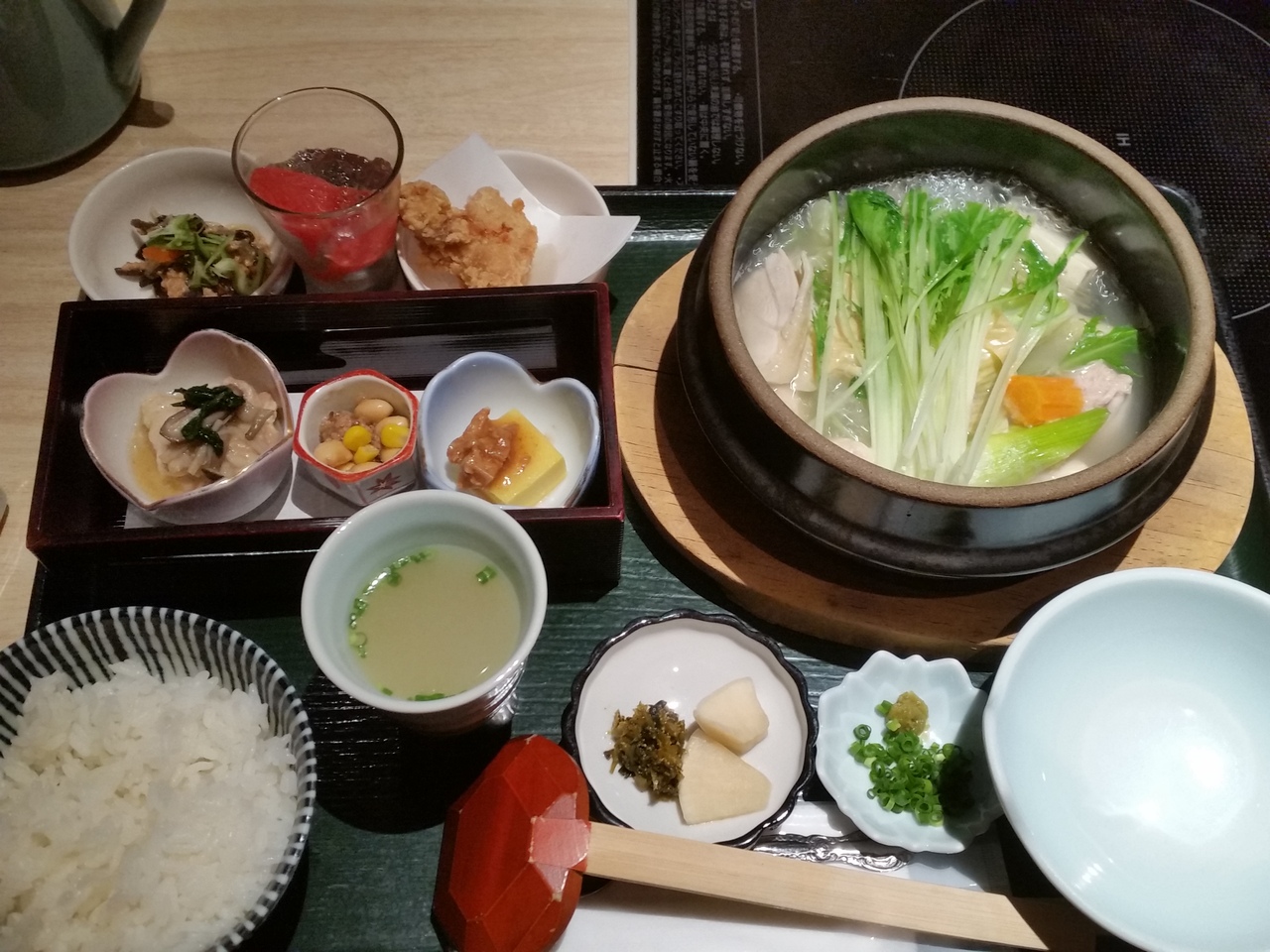 一人用の水炊きランチは@1500円で、いろいろ小鉢も食べられました。