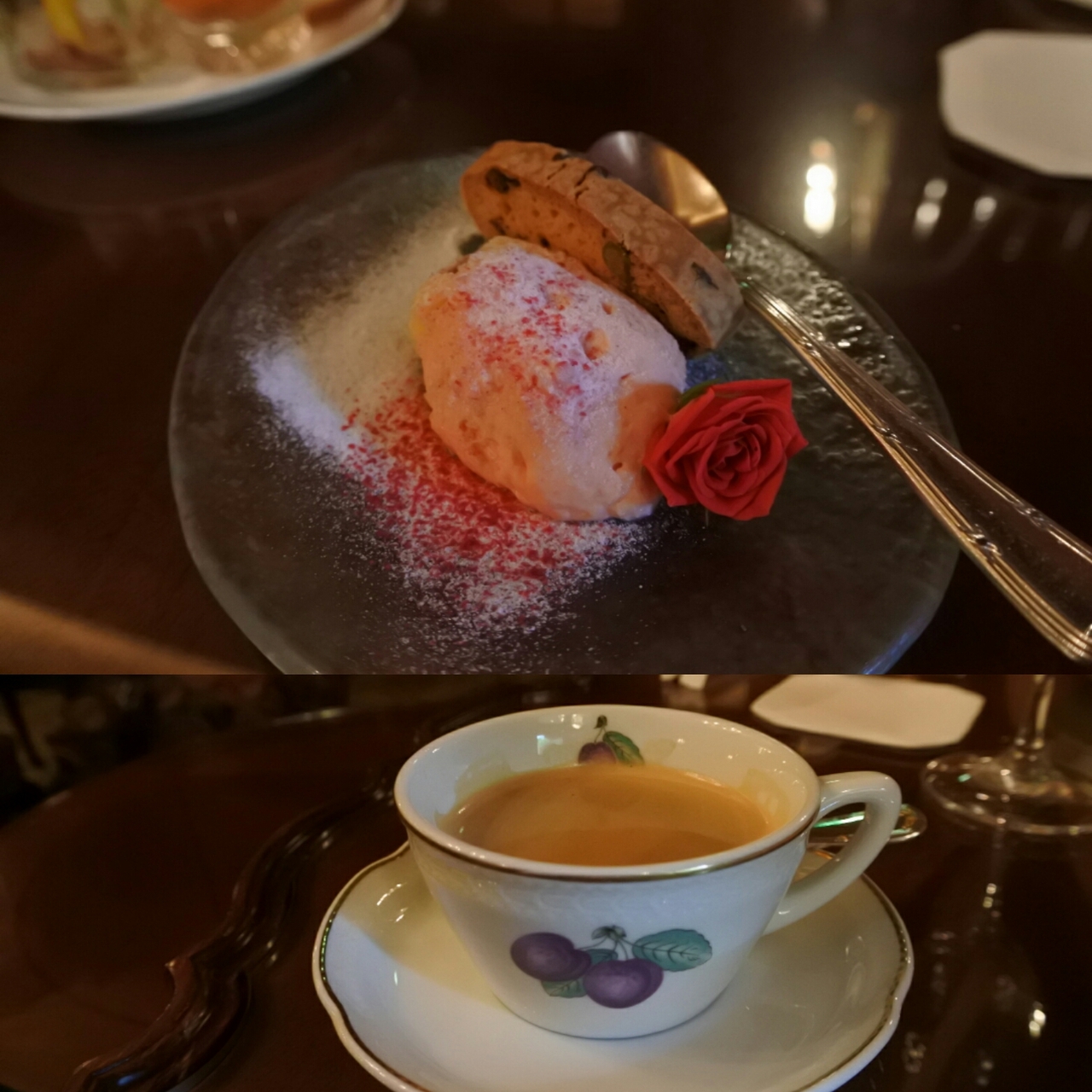 乾杯のシャンパン、ワイン、食後のコーヒーもついていてお徳でした。