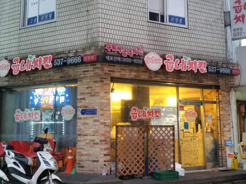 新沙駅近くのチキンチェーン店「クムネチキン」です。
