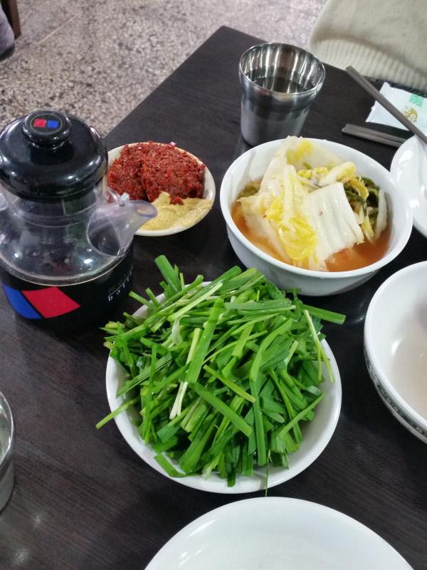 メニューはカルグクスかスープ+ご飯の2種類(プラス高麗人参入りかどうか)