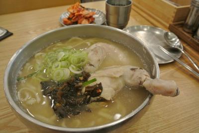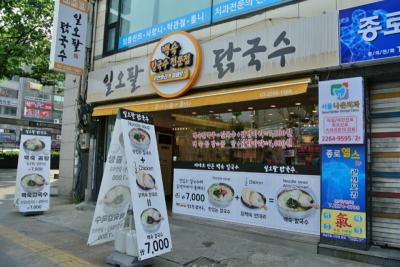 鍾路5街駅・広蔵市場の入口近くにある鶏半羽が入ったカルグクスのお店です。