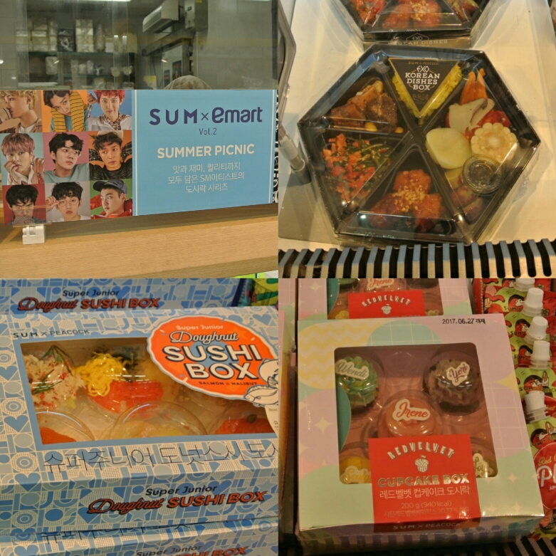 EXOは韓国フード詰め合わせ@15000W、レッドベルベットはかわいいスイーツ等。
