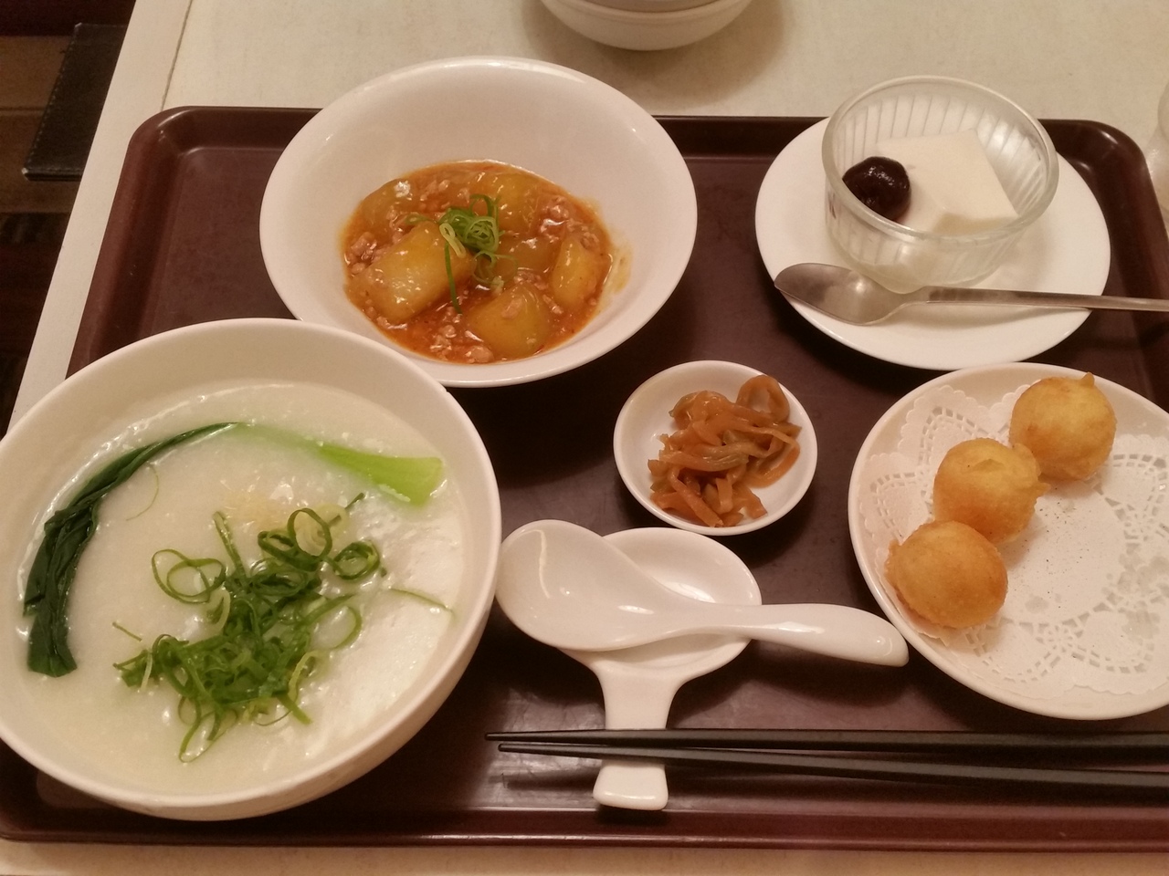 お粥+本日のお料理+デザートで1,580円ほどと少しお高めですが