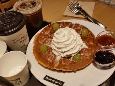 コーヒーやふわふわのワッフル、夏場はカキ氷(ピンス)もあります。