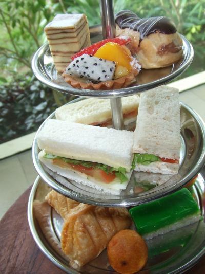 3段がさねのハイティセットを食べ、