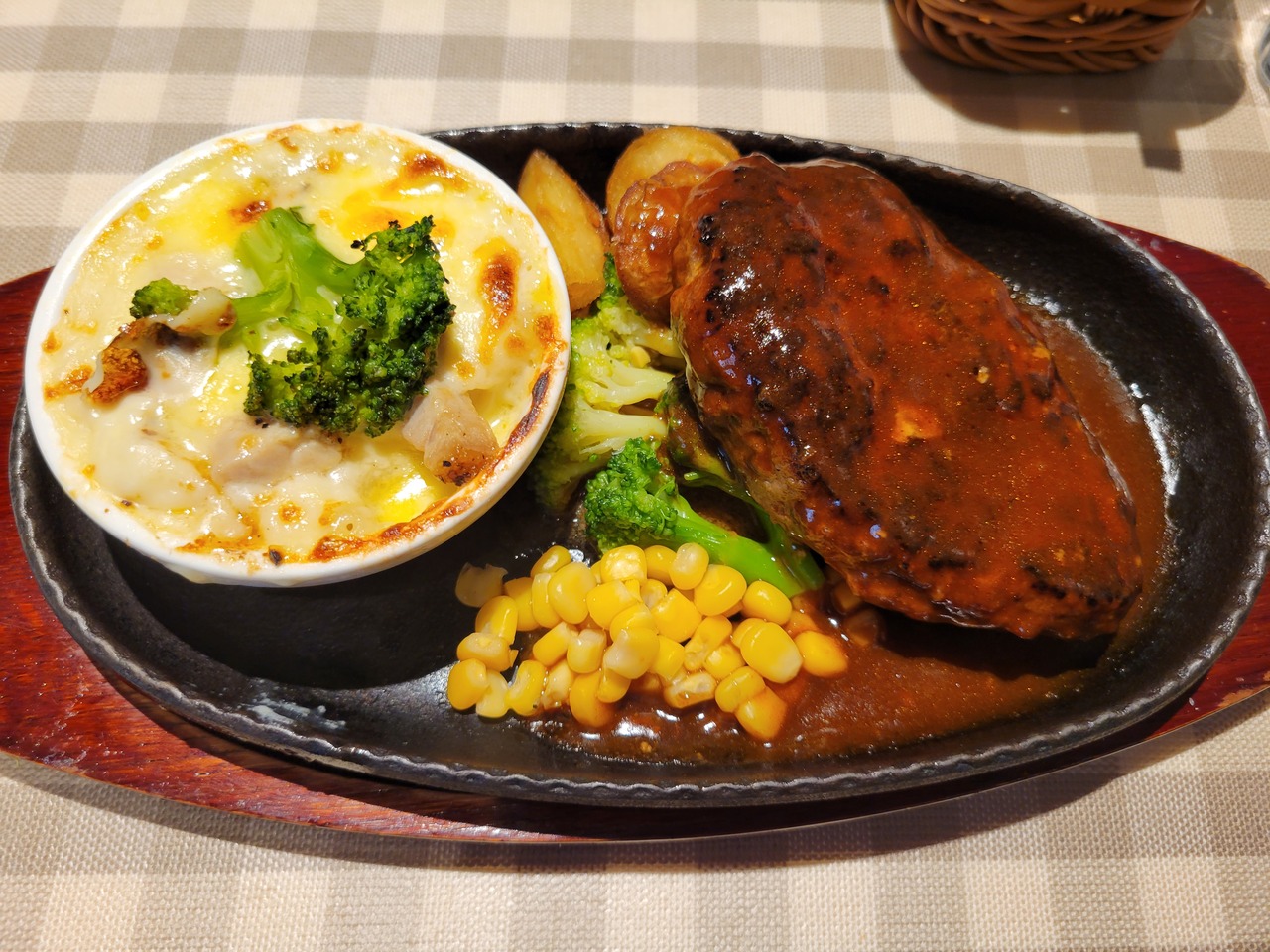 ハンバーグとマカロニグラタンのセット@850円にしました。