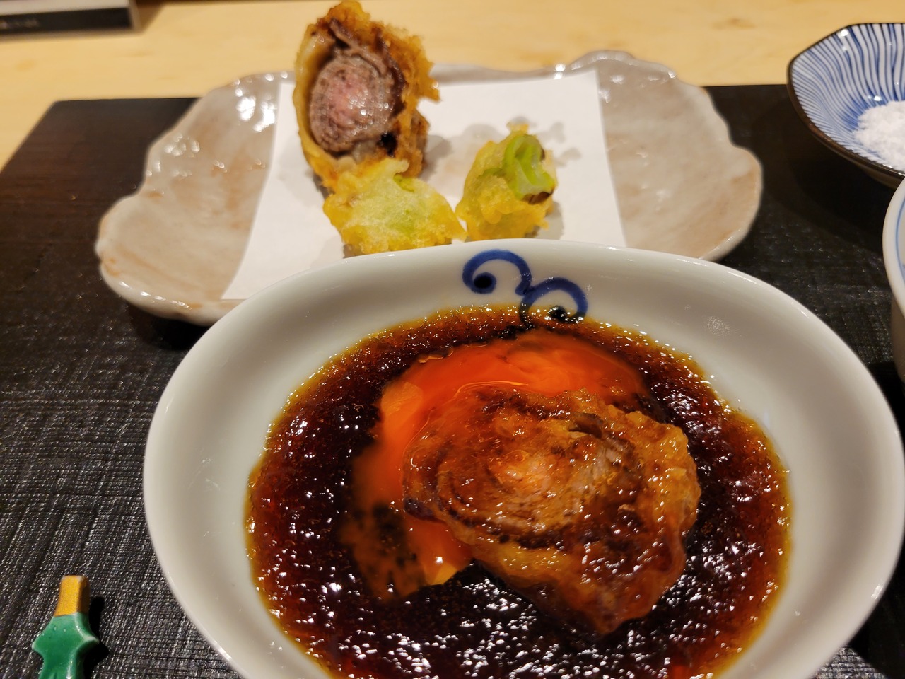 お蕎麦もついたランチ@2,200円+ドリンク(注文必須)+追加の天麩羅で3,800円でした。