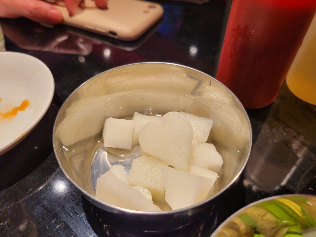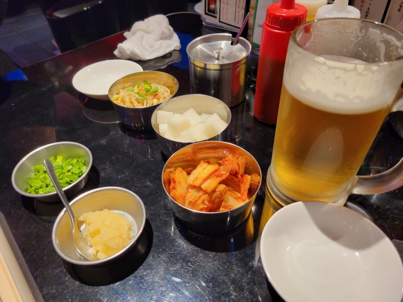 パンチャン(キムチ・大根の酢漬け・もやしナムル)は