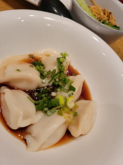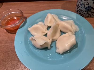 ここの水餃子、皮がもちもちでタレもおいしいし