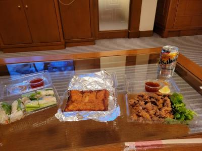 生春巻き、トムヤムクン風から揚げ、海老パンをテイクアウトして
