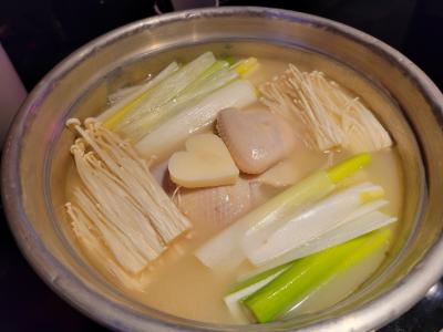 チキン・おネギ・ジャガイモ・えのき・トックが入っています。