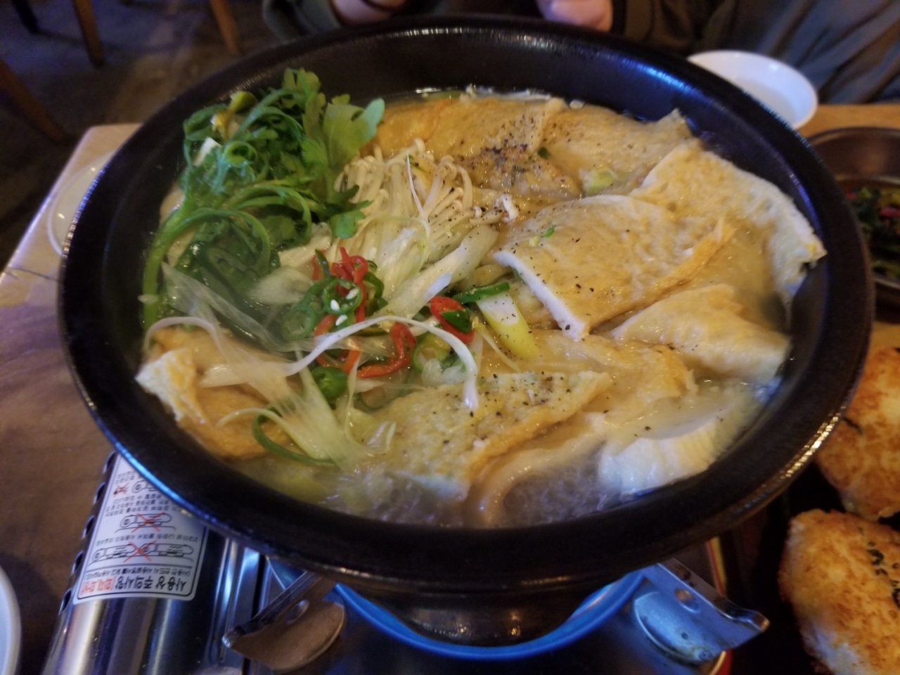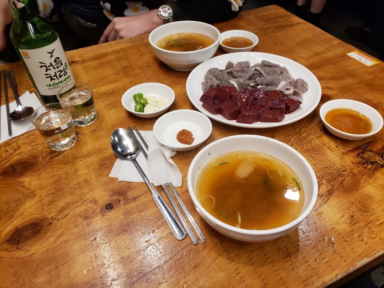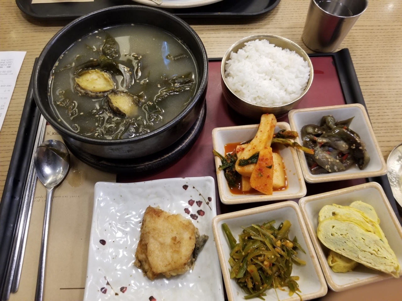 ちなみに友人はとんかつ、私はわかめスープ(韓国料理)を食べました。