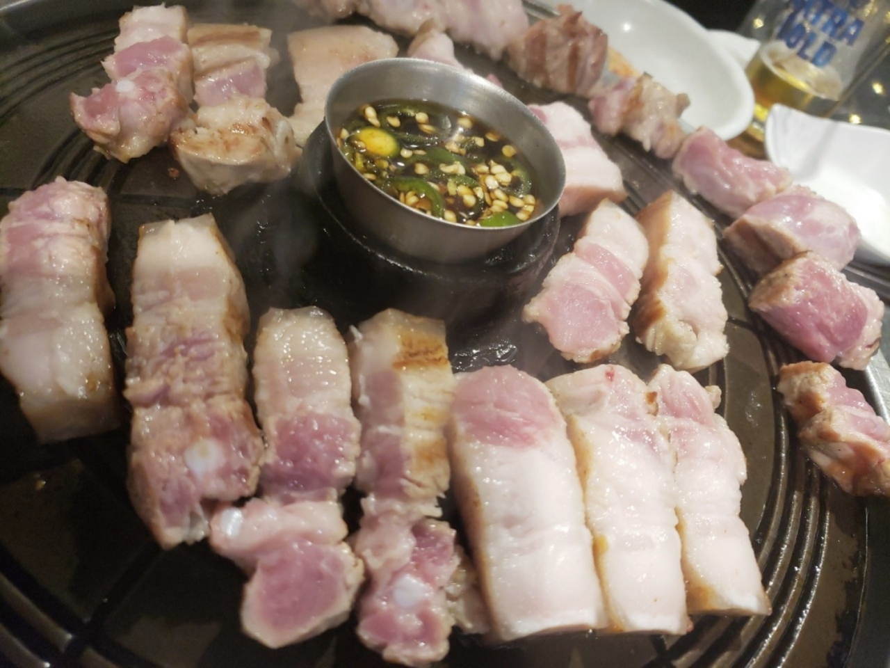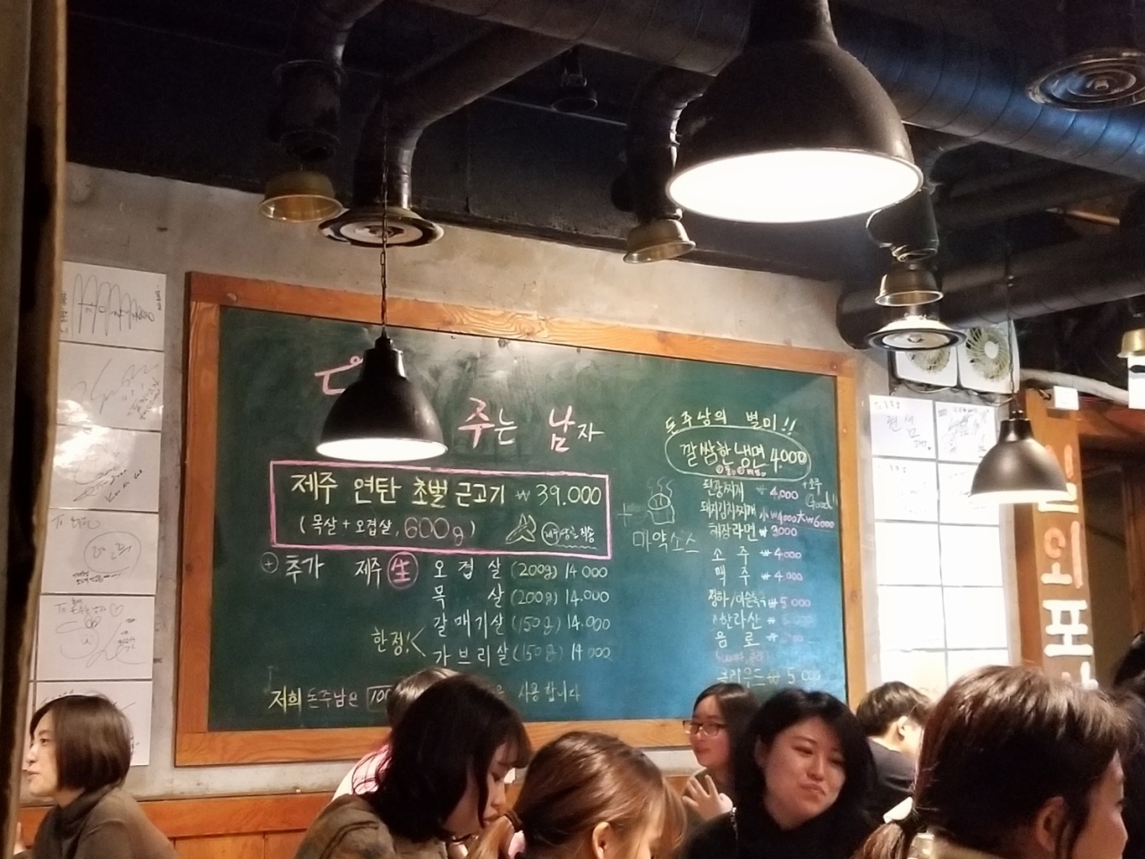 弘大の熟成サムギョプサルのお店で晩御飯をしました。