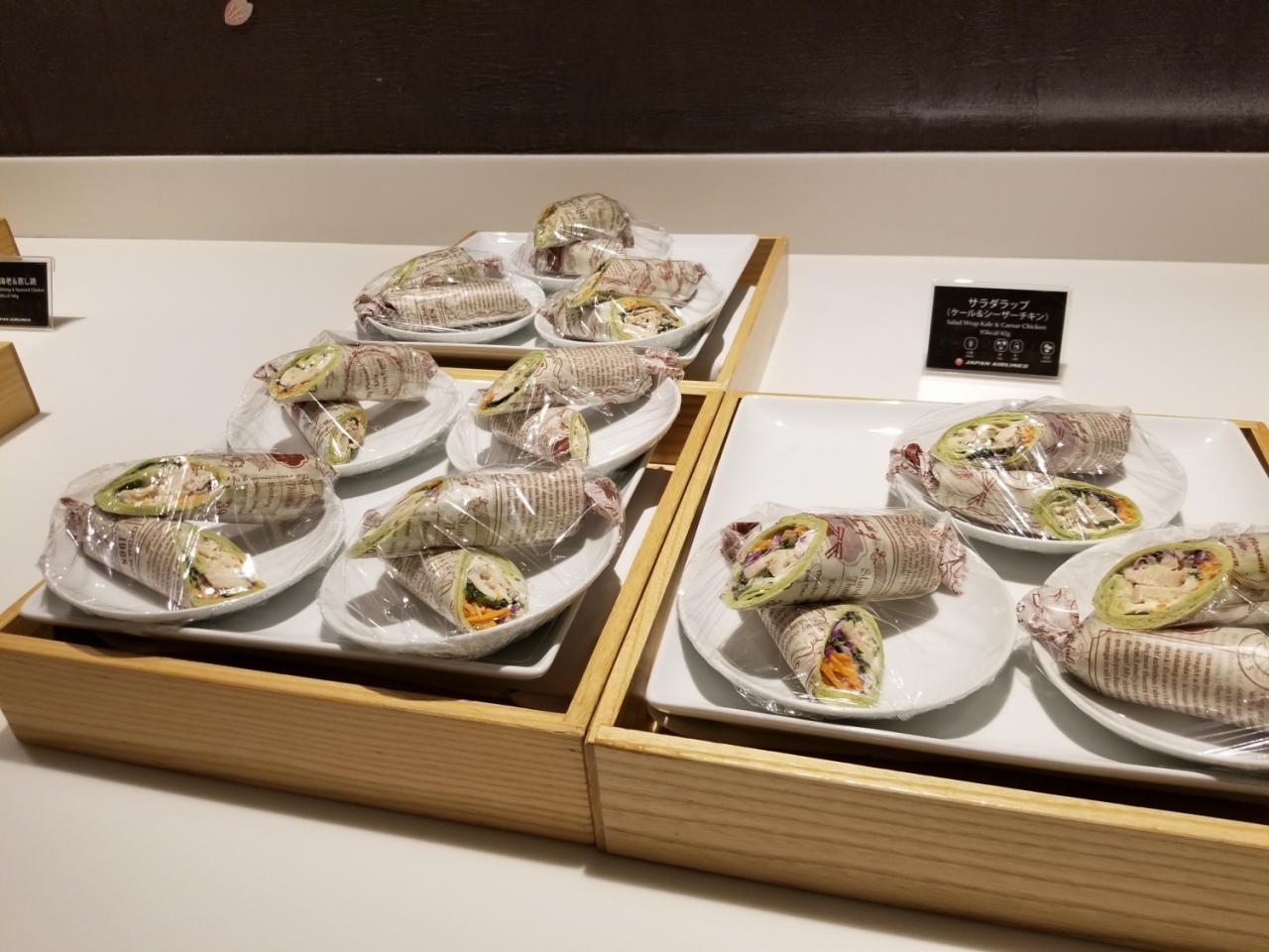 パン、ラップロール、生春巻きがラップをして置いてありました。