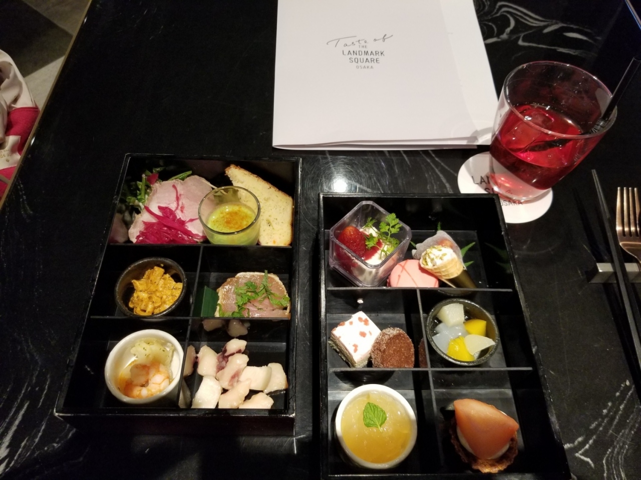 大阪城公園駅近くのお店でお重箱に入ったアフタヌーンティをいただきました。