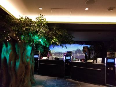 ホテルに入るとジャングルのような内装で恐竜がお迎えしてくれて