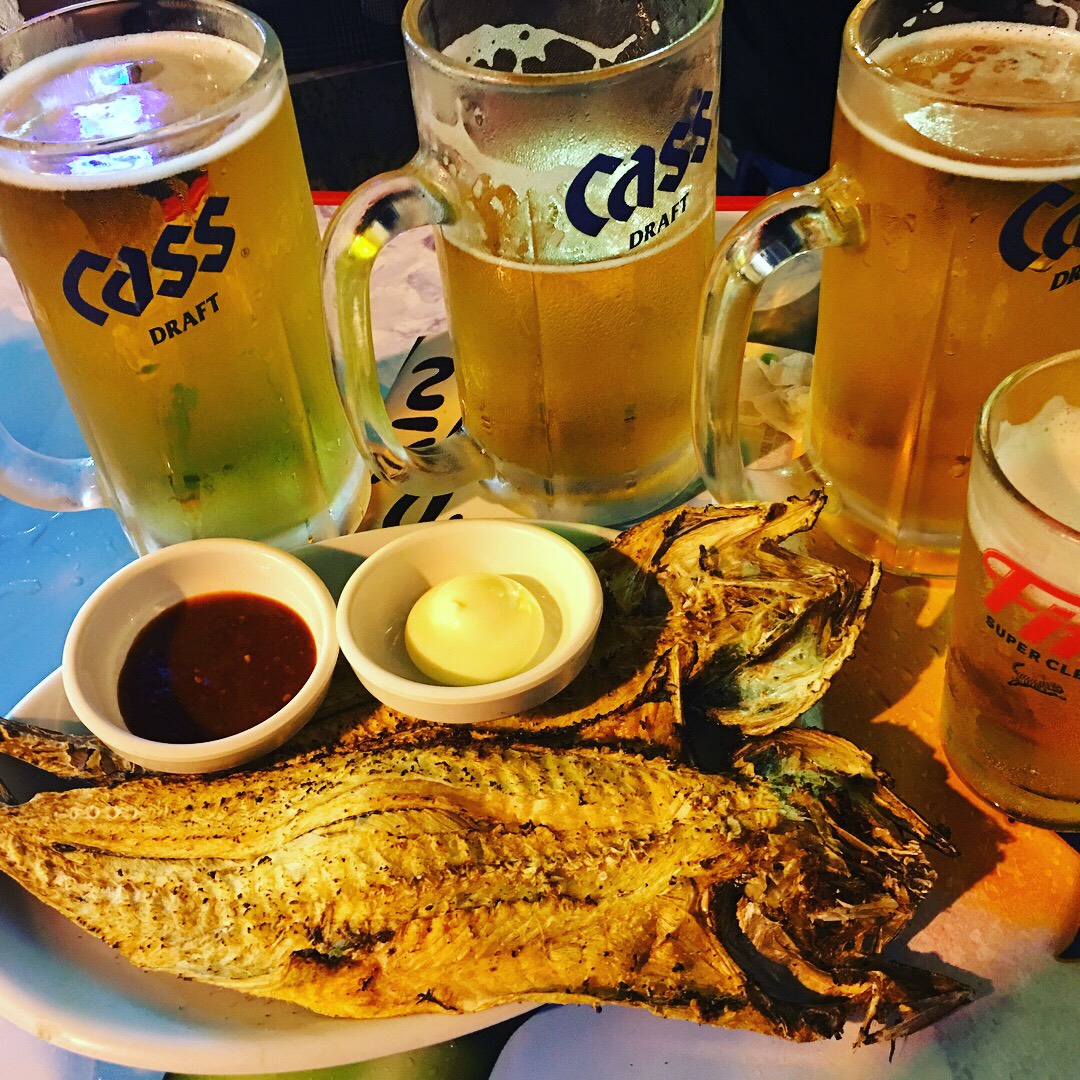 こしょうの効いた手羽先とビールは安定のおいしさです。- 旅行時期