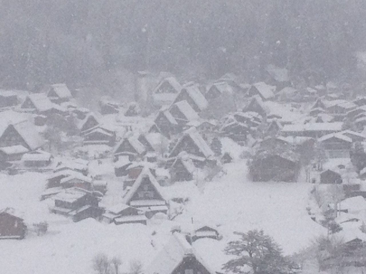 合掌造りの集落を一望できる展望台へはシャトルバスがあり片道200円です。時間は集落から10分ほど。展望台では写真撮影の業者さんがおり、「白川GO~」の掛け声で写真を撮ってくれます(笑)