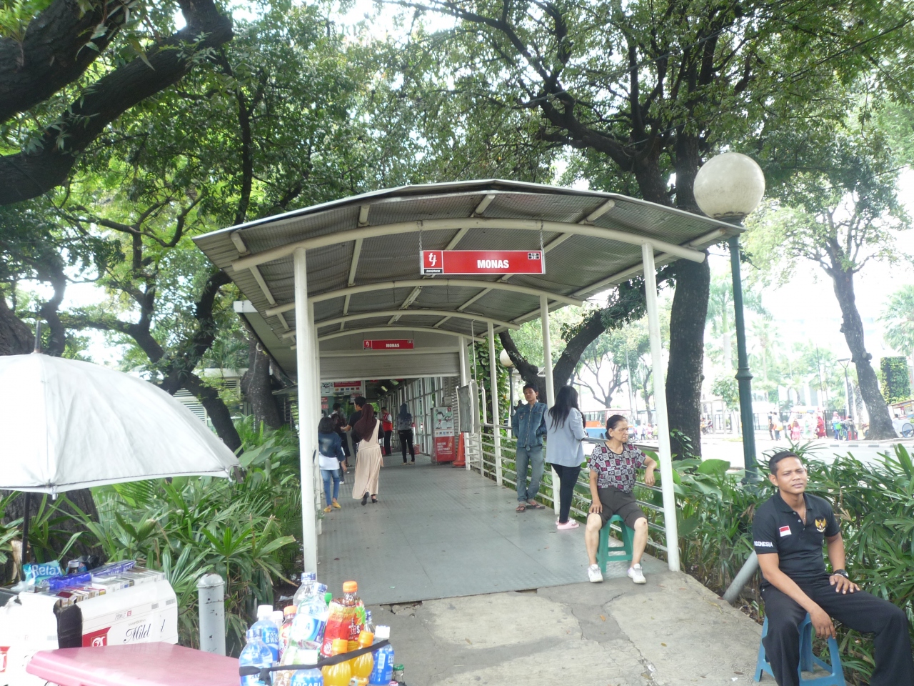 トランスジャカルタのMonas停留所から行きました。他の方が書いているのと同様で入口が分かりにくかったです。広場の周りは柵があるので入口を探さないと入れません。