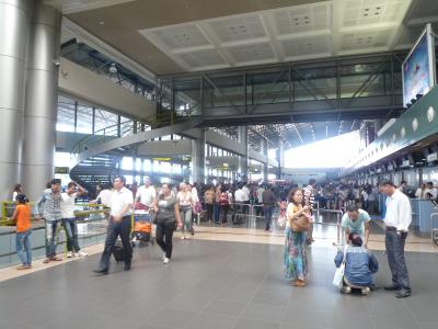 小さな空港です。税関後の出国ターミナルは何もないです。