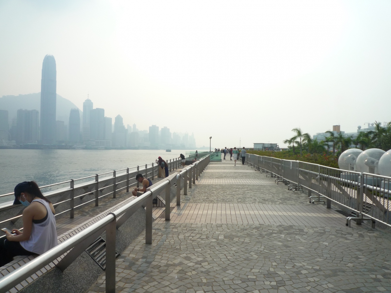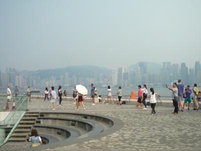 ここから見る香港島側のビル群は香港のイメージにピッタリ。昼間は海辺を散歩、夜はシンフォニー・オブ・ライツ鑑賞の定番スポットです。昼間は空いていますが、夜は毎日20:00からシンフォニー・オブ・ライツが始まるので(13分間)、混雑します。- 旅行時期