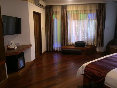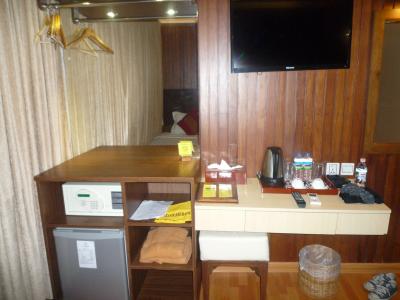 テレビ、冷蔵庫、セーフティーボックス、ドライヤー、シャンプー、歯ブラシ等、一通りのアメニティは揃っています。部屋自体も綺麗に清掃はされています。