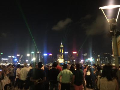 毎日20:00から13分、光と音のショーが始まります。写真は尖沙咀プロムナードからの一枚です。香港文化センター前の階段に座って鑑賞できます。海の近く程混雑しています。やはり人が多いです。- 旅行時期