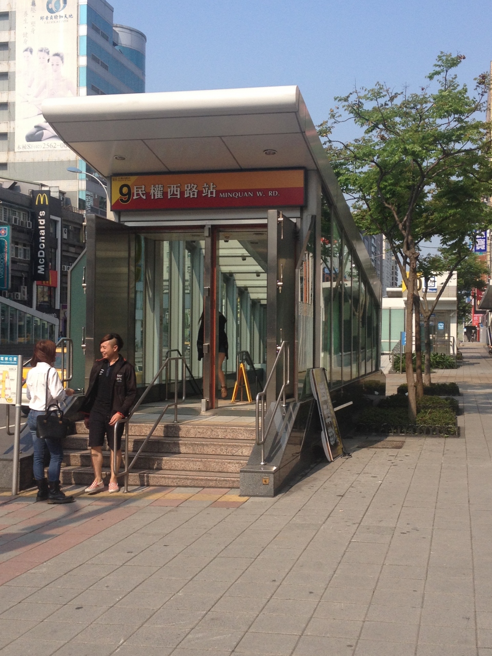 最寄りのMRT民権西路駅までは徒歩5分弱、大通りに面しているので安心です。
