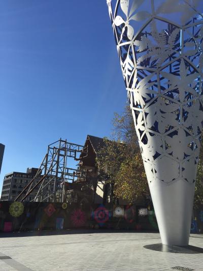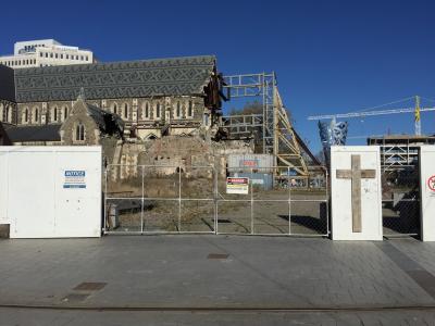 かつてはクライストチャーチの中心だったと聞きました。大聖堂は被災したまま、悲しい姿なってしまいました。倒壊の恐れがあるので柵に囲まれています。