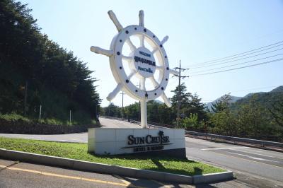 バスを乗り継いで、サンクルーズホテルの最寄りのバス停に到着。地方はバス...