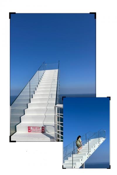 こちら♪海に突き出た階段アート。楽しそうに駆け上がる少女の姿。大人の階...