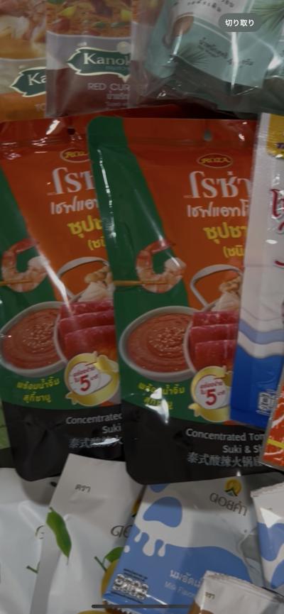 カナックワン トムヤムクン水480mlを入れた鍋にエビ、海鮮、野菜入れ...