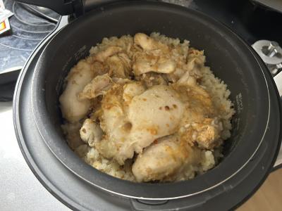 研いだお米と、鶏もも、水、ソースを入れて炊飯器で炊くだけで、簡単にでき...