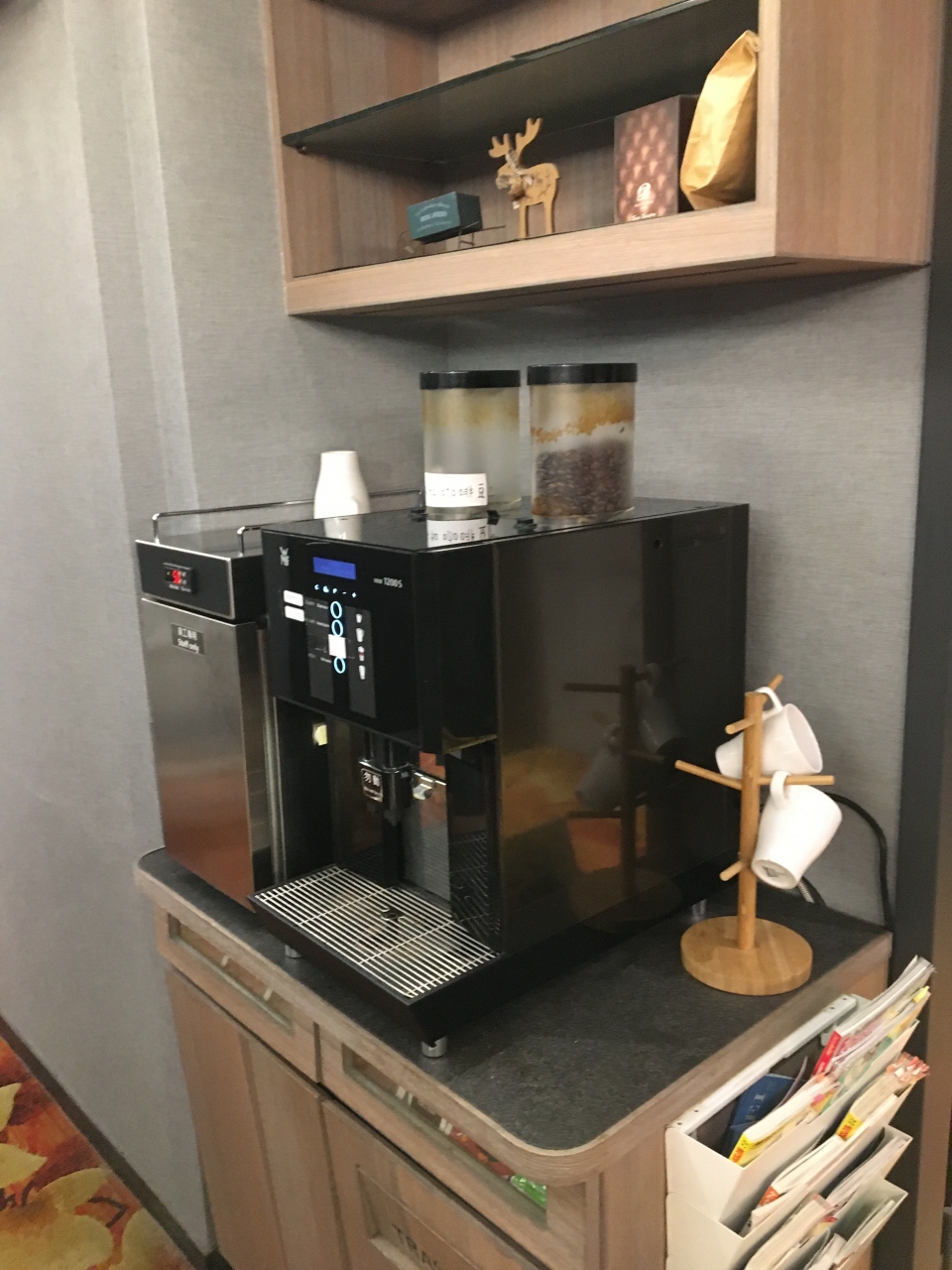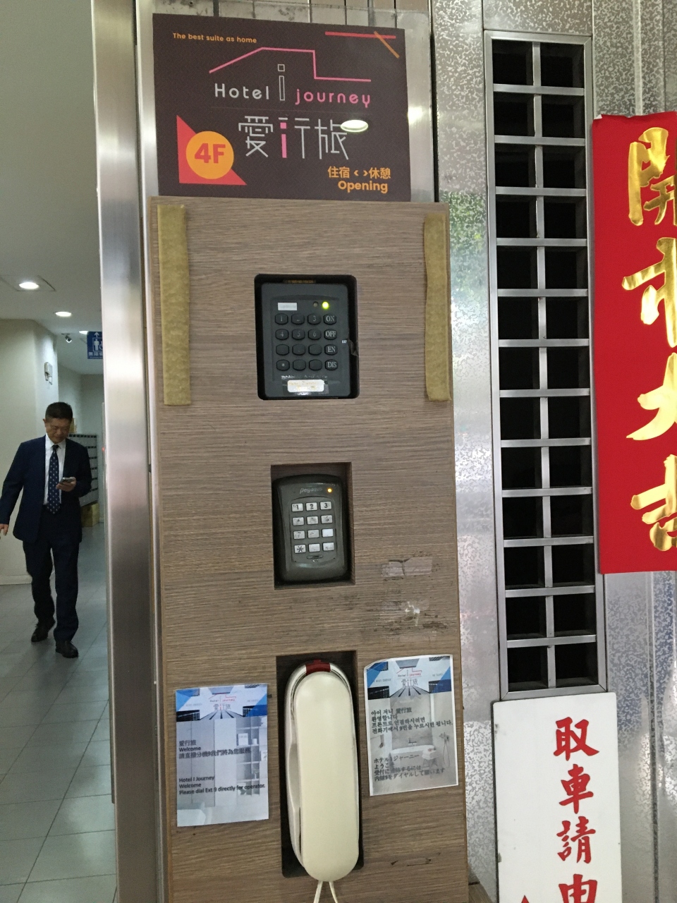 とてもホテルとは思えない入り口です!雑居ビルの中で、様々な階に部屋やフロントがあるんです。18時以降の夜間は門が閉まって、門を開けるためにカードをかざす場所は、暗証番号キーの上の白い長方形のところです。4Fがフロント。コーヒー、紅茶は何時でも無料で、部屋に持ち帰りできます。様々な階に部屋やフロントがあるこんなホテル、生まれてこの方初めての体験です!...しかし部屋はとても綺麗でダブルベッドのツイン!でした。シャワールームも2つありました。一つはバスタブ付きです。金庫もあり。冷蔵庫には毎日2本のミネラルウォーターと、お菓子が頂けます。我々の部屋は6Fでしたが、ホテルの部屋は2つ。あと4部屋は事務所...という変則割り振り。。数分以内にMRT双連駅や寧夏路夜市、マクド、ケンタ、スタバ、コンビニ、ワトソンがあって、ロケーションも最高です。外観さえ気にしなければ、とても良いホテルです。