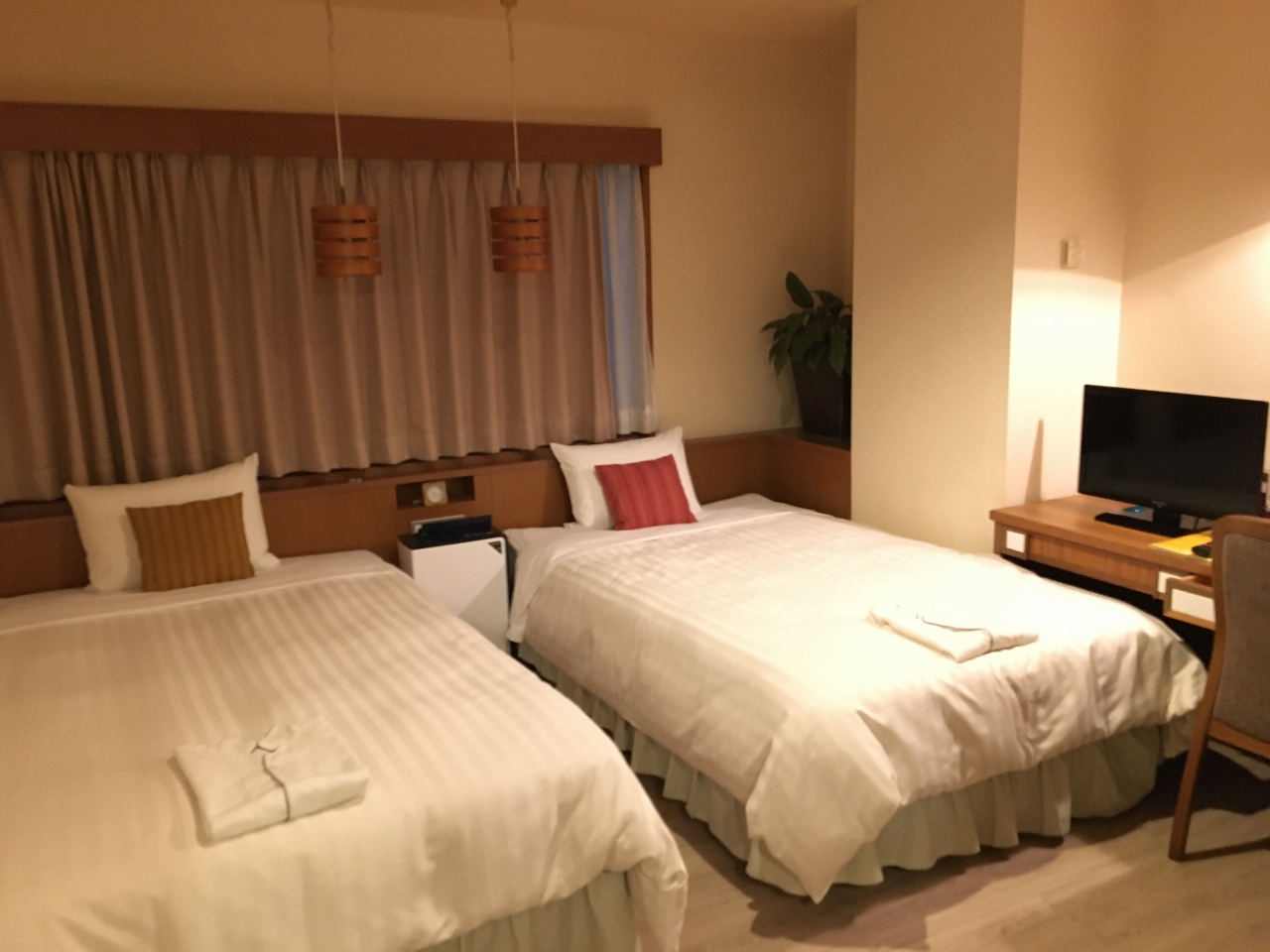 ビジネスホテルですが、パジャマ付きで大浴場が屋上にあり、星空を見ながらのラジウム湯露天風呂は最高です!バイキング朝食付きでした。美ら海水族館や今帰仁城跡の観光後に、やんばる急行バス(予約不可)で世冨慶バス停でおりれば徒歩5分ですのでロケーションも良いです。無料ペットボトル水有り。