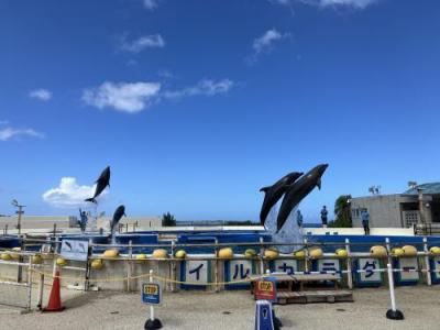 11:30からのイルカショ-(10:30 / 11:30 / 13:00 / 15:00 /17:00)でしたが、11:20ぐらいには締め切りになりましたので、行かれる方は最低10分前までに行かれた方が良いですね。そして美ら海水族館入口正門から入場入口まで下り坂道で徒歩5分以上かかります。帰りは登り坂道になりますし、園内も広いので移動に思ったより時間をとります。なので滞在予定時間は余裕をもって計画しないと、廻り切れないと思います。