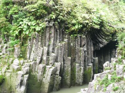 高千穂の峡谷の岸に広がる屏風面の岩(高さ約70mを 「 仙人の屏風岩 」 と言います。