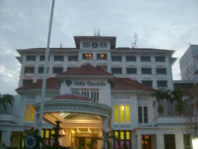 ジョグジャカルタ駅から大体5分くらいです。駅の近くなのに手ごろな価格で、ロケーションも抜群、お勧めです。我々は老齢バッグパッカーですので、駅前ホテルが必須条件でした。目の前がマリオボロ通りになっています。ジョグジャカルタの宮廷(Kraton)からジョグジャカルタ塔までの間、北へ進むにつれてアーマッ・ヤニ通り(Jalan Jend. A. Yani)、マリオボロ通り、パンゲランマンクブミ通り(Jalan Pangeran Mangkubumi)と名を変えます。ホテルチャーターのタクシーも用意してくれます。