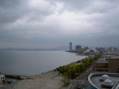 窓からの眺めは琵琶湖を一望できて絶景だが、比較的低層のビルであるため、すぐ近くの商売敵のプリンスホテルからの眺めが気になる。