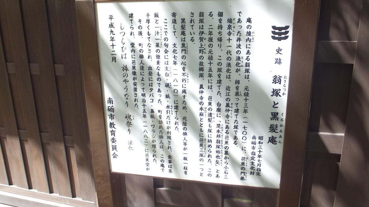 井波の浄蓮寺境内に、翁塚と黒髪庵がそっと佇んでいます。