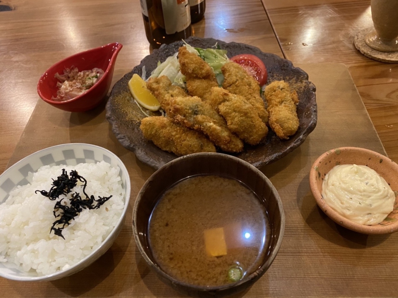 ハンバーグは珍しく正方形に成形され、フワフワで柔らかい食感。濃厚なビーフそのものの味でした。牡蠣フライは絶品。生涯食べたなかで最高でした。