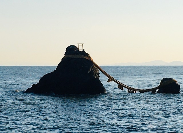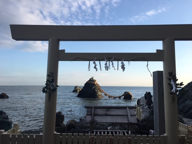 約10年ぶりに訪れました。夫婦岩があまりにも有名ですが、この「夫婦岩」は、沖合約700m先に猿田彦大神縁りの霊石「興玉神石」と、日の大神を遙拝するための鳥居とみなされています。