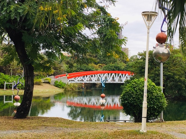 湿地公園には野鳥が多く、趣味の方にはたまらない場所のようですが、一般の人は日本統治時代に作られた「高屏渓旧鉄橋」の天空歩道が人気です。