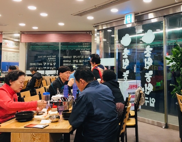 「カルビタン」とは、カルビ+タン(韓国語でスープ)という名前の通り、牛の骨付きカルビをじっくり煮込んだ透明なスープ料理。ハサミで肉を切ったり、骨から外したりします。スープは驚くほどスッキリ。油は上手に落として、旨みだけ残した感じです。- 旅行時期